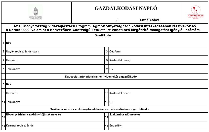 A Vidékfejlesztési Program több intézkedése és ezen kívül más jogszabályok is előírják a gazdálkodók részére a gazdálkodási napló vezetését, melyek az alábbiak: